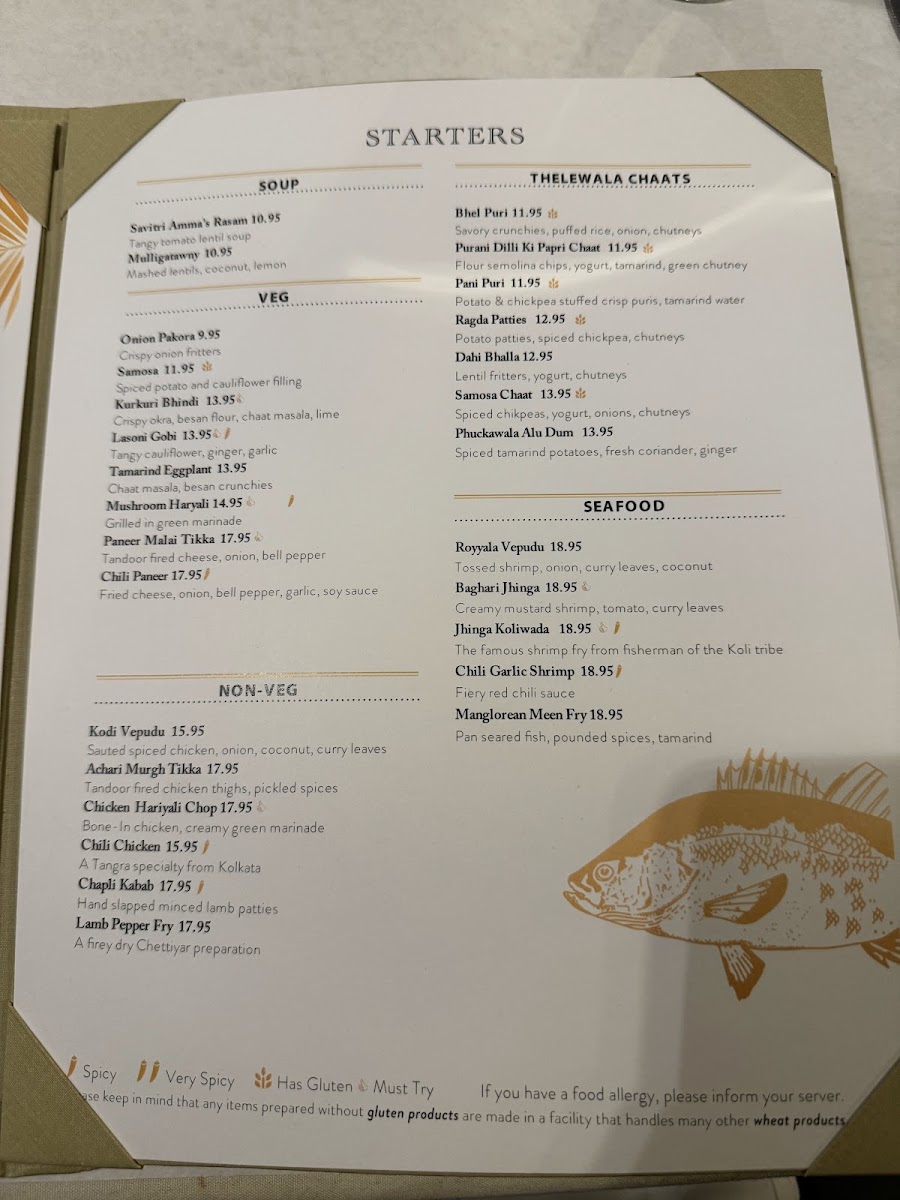 Potato patties, spiced chickpeas, and chutneys. Has gluten.